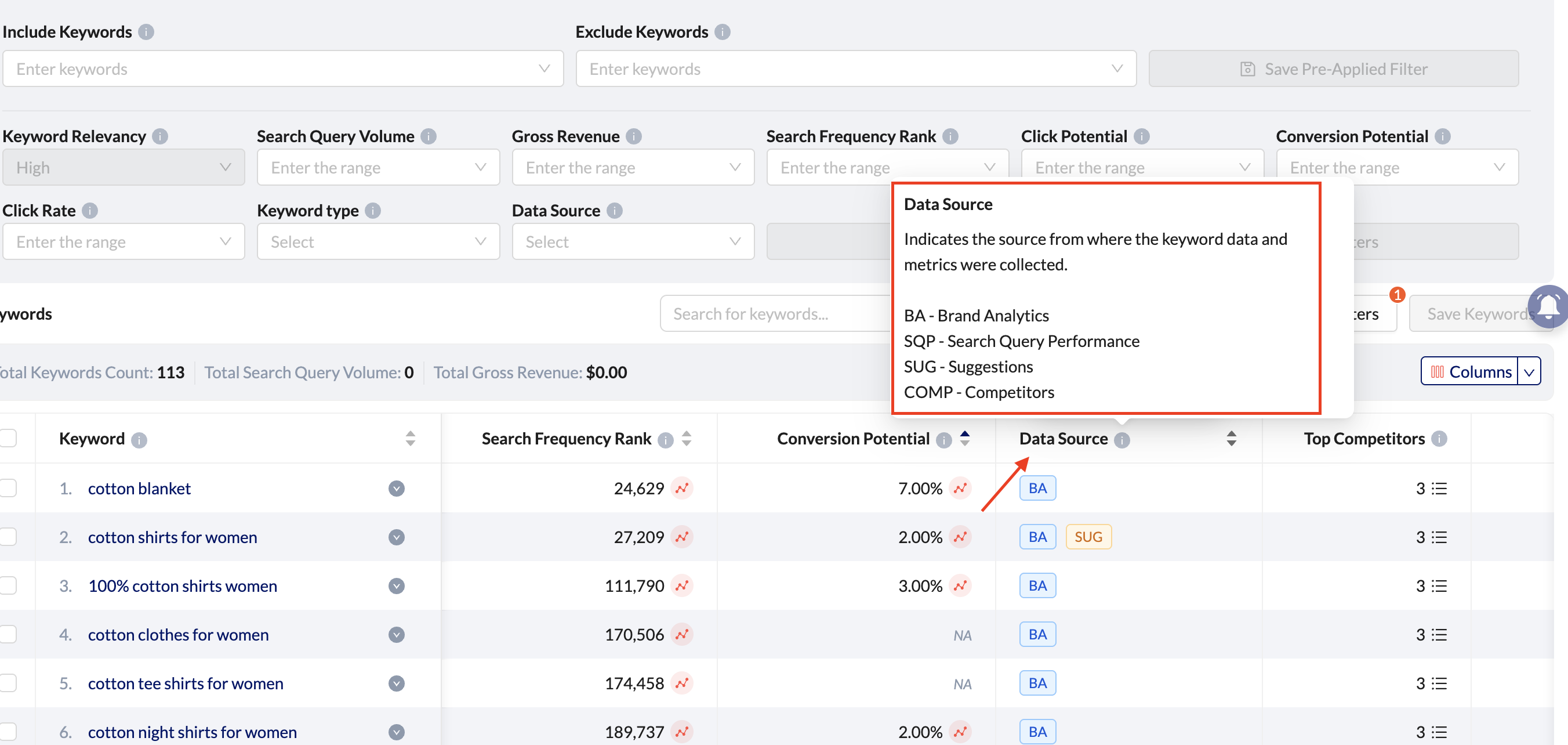 Keyword Researcher provides transparent visibility into keyword demand and performance using multiple Amazon data sources. By understanding metric definitions, data origins, and availability rules, sellers can confidently interpret keyword data, avoid misreading NA values, and make informed decisions for listing optimization and keyword prioritization.